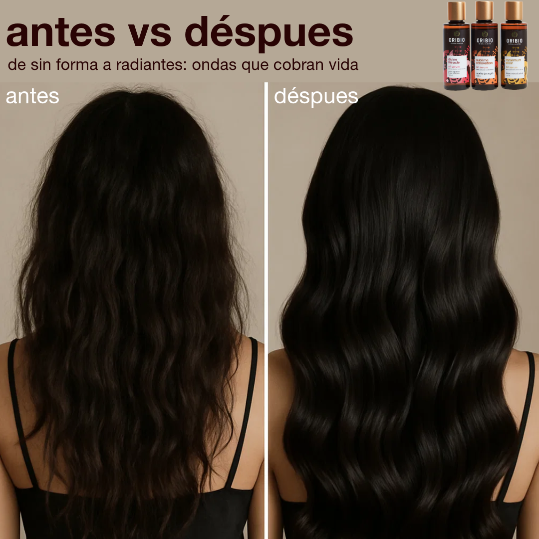 Resultados basados en experiencias de usuarias y pruebas de uso del ritual ORIBIO. Los resultados pueden variar según tipo de cabello, clima y hábitos de cuidado.